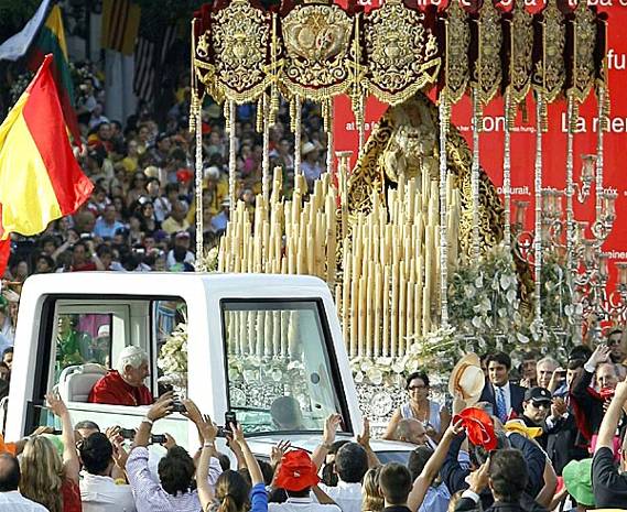 Momento en que S.S Benedicto XVI pasa ante la Virgen de Regla de La Hdad. de los Panaderos en JMJ de 2011